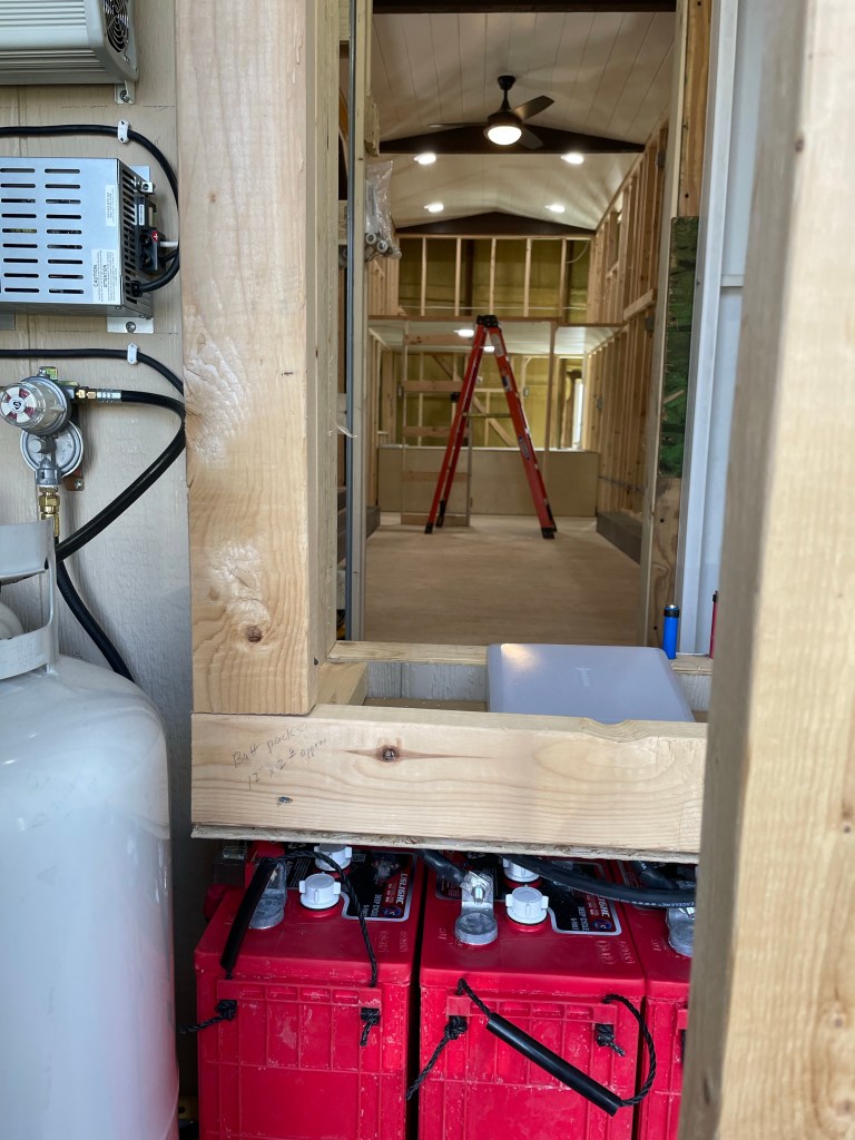 THE121 will be powered by solar which will be stored in these Honda batteries. When the sun isn’t out or…it’s winter (let’s be honest, I live in Pennsylvania) the propane will also serve as power. Do you notice the ceilings lights are in and on?!